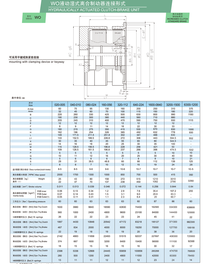 WO系列是一種組合式離合器/制動裝置,采用燒結青銅摩擦材料油驅動。它通常用于接合和制動任何工業機器(偏心壓力機、關節壓力機、金屬沖壓、封邊機、沖床、深沖壓力機、機械剪切機、熱鍛等)。它是要求高性能和最大可靠性的機器的理想產品。